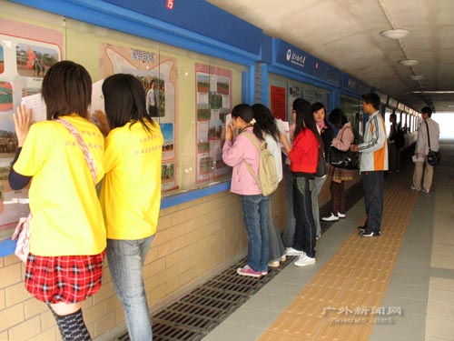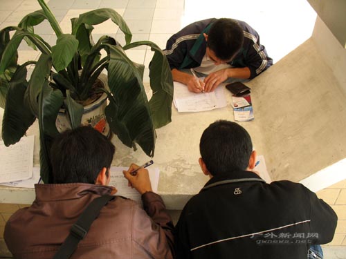 现场许多前来“见面”的学生都是路过“巧遇”,所以许多参加面试的同学都没有准备相关的简历,所以在隧道内的台阶上形成了一道独特的风景,许多同学都在现场“赶制”简历。
