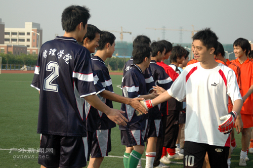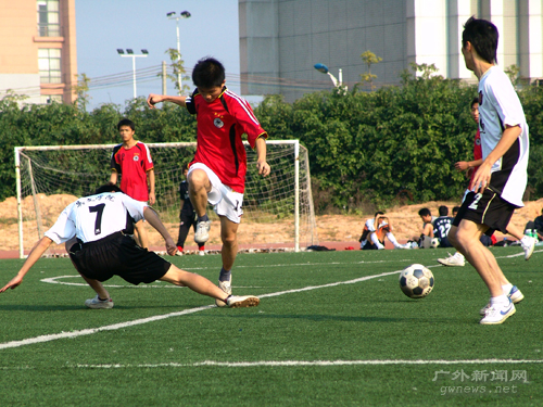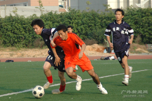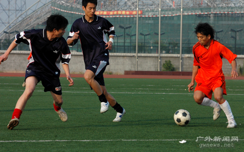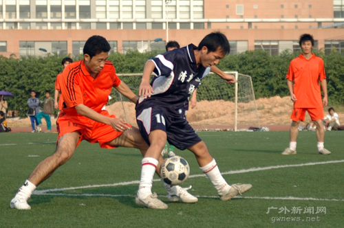 下午3点30分,众所期待的决赛时刻终于来临,身披橙色战袍的经贸队与一身深蓝的管理队联袂在绿茵场上上演了一场龙争虎斗的好戏。
