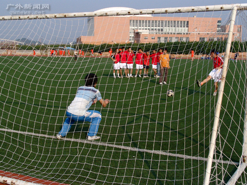 第4分钟,管理队迎来全场最好机会。管理队22号吴长庚在经贸底线带球突破,面对前来封堵的经贸后卫,巧妙地穿裆过人,然后把球往中一拨,跟上接应的队友10号何伟军直接面对门将却鬼使神差把球踢偏。