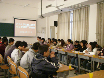 本网讯 12月28日下午2点, 共青团广东外语外贸大学委员会06-07学年度上学期期末总结大会在南校区C208教室拉开了帷幕。广外团委副书记谢秀兰,校团委指导老师曾继平,执行助理梁家星、陈斯以及校团委各部门成员参加了本次大会。