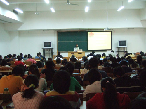 本网讯 国际商务英语学院英语专业四级考试备考讲座于12月28日下午3点在B8报告厅举行,商英学院英语教师彭玲玲为明年将要参加专四考试的同学做关于备试技巧的讲座,商英学院全体大二学生出席了此次讲座。