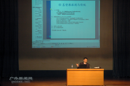 在介绍基督教的三大派别时,张博士纠正了普遍存在的把基督新教和天主教当成两个不同的宗教的错误观点,并幽默地说这是一个国际笑话,还是一个有中国特色的国际笑话。诙谐的话语顿时使现场的气氛活跃起来。