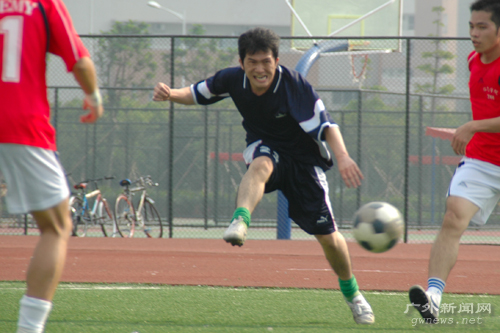 进球以后商英学院队攻势不减,不断向新闻学院队的球门发起猛攻,不过都被新闻学院队的防守球员一一化解。