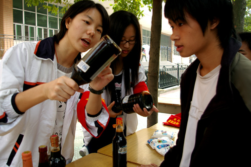 华南农业大学食品学院以及广州美术学院的同学,也在广外志愿者行动指导中心的邀请下赶赴我校,为“服务一条街”增添不少色彩。华农的同学在现场摆开强大阵容,通过一系列食品知识宣传板,向大家展示许许多多日常生活中应注意的食品安全卫生知识。吸引了不少人在宣传板前驻足良久,认真阅读,甚至有同学拿出笔记本不断抄下自己需要的知识。华农的同学还在现场一遍遍地进行指导,细心讲述如何辨别盐、酱油、味精、啤酒、饮料等日常食品的真伪。广州美术学院的同学则在相思河畔为同学们描画肖像,得到许多同学的“光顾”。