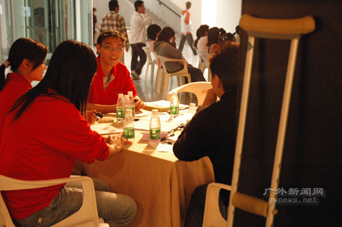 一群来自广药的志愿者在展馆现场为同学们进行解说。一名志愿者告诉记者,给他们培训的“老师”正是一位艾滋病感染者,他告诉了大家很多有用的关于艾滋病的知识,大家都很喜欢他。