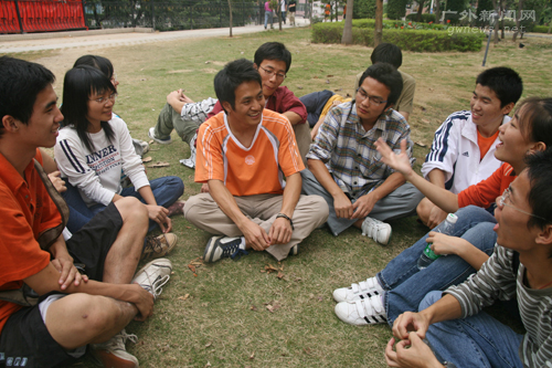 参加男子100米赛跑的05级东语学院刘超智同学,他身穿一件紧身的褐色睡衣,在人群中格外抢眼。问及为何这副打扮,他表示这样穿感觉更舒服,跑起来会更有感觉。