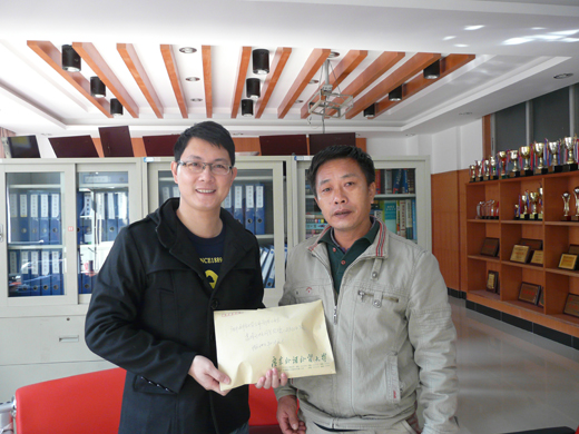 本网讯 2011年元旦前夕,公开学院在第一教学搂207室举行“为刘世玉同学捐款”仪式。公开学院商务英语系副主任钟振威代表全院师生将23000多元爱心善款送到刘世玉父亲的手上,同时,他转达师生们对刘世玉的美好祝愿,希望她早日康复,重返校园。 刘世玉是公开学院商英系09级本科2班学生,2010年12月21日被确诊出“左心室内有一个活动肿瘤”同时还查出因为系统性红斑狼疮引起的急性肾炎、急性肾衰竭和附件肿瘤(暂时尚未鉴定出恶性或良性),生命垂危,几次进出重症病房。因为急性肾炎不能正常排泄,医生在她的脖子大动脉处植入一个导管,每天靠透析来帮助身体排出毒素,万幸的是所有的肾小球都完好无缺,这令一个濒临消失的生命又有了生的希望,但是高额的医药费令只依靠父亲一人的收入支撑的家庭严重超负荷。
