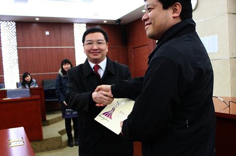 仪式中,梁学宏向韩国教授金锡珉赠送了礼物,以表示对来自远方客人的友好欢迎。