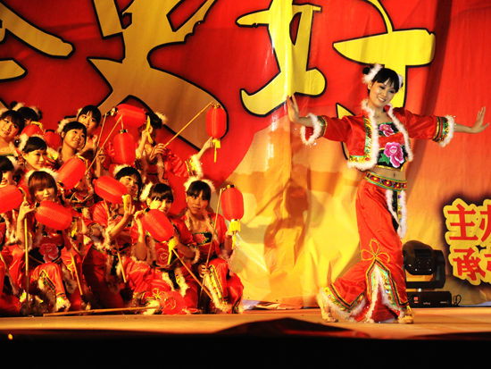 荧光棒舞动着青春,麦克风传递着活力,最后,晚会在融合了广东特色的粤剧、日语、通俗、英文等多种元素的歌曲串烧中圆满落幕。