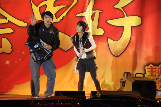 元旦晚会在洋溢着喜庆的舞蹈《红灯笼》中拉开序幕,华丽的音乐,柔美的动作,公开学院艺术团舞蹈队的姑娘们用红灯笼舞出一片祥和的氛围。大学话剧队带来的《寻碟记》通过挖掘细小的生活笑料,展示了大学生轻松愉快的校园生活;极具讽刺意义的哑剧《无良庸医》在同学们夸张、到位的表演中,庸医的形象被刻画得淋淋尽致;晚会最大的亮点是由二十多名亚运志愿者代表出演的情景剧《我志愿,我快乐》,为大家叙述了广州亚运、亚残运会志愿服务工作中的点点滴滴,当身穿黄色志愿者主管服装的钟振威、施小亮、马健、李飞宇四位老师出场时,更是引起台下观众的尖叫与欢呼。