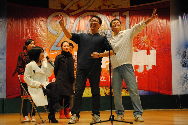 12月30号晚,英文学院“英文一家亲,We are family”迎新晚会在六教报告厅温情开幕。白色雪花装点着节日的舞台,热情洋溢的脸孔共同迎接新的一年,这是属于英文人的“家庭大聚会”。英文学院院长温宾利、党委书记王斌、党委副书记何伟儒、原任院长刘岩、原任党委书记何洪亮以及众多老师与同学们一起度过了这个愉快的晚上。看点一:前辈们风采依旧