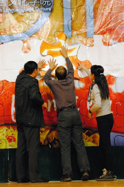 学院领导等齐拼凑“英文一家亲”巨幅拼图