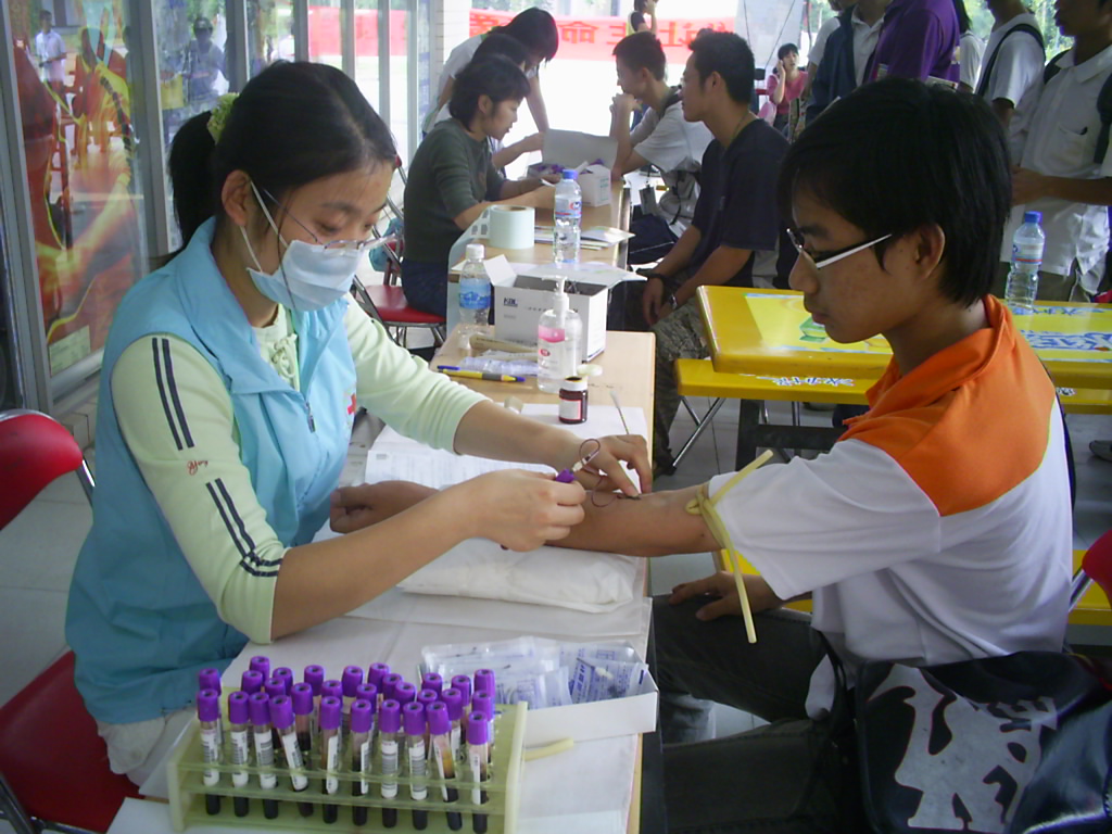 早在本月1日,该捐献活动就接受了数百位同学的踊跃报名,13日,报了名的同学主要进行第二个步骤——抽取血样进行HLA初步化验,共有366人参加了血液抽样,其中捐过血的有224人。