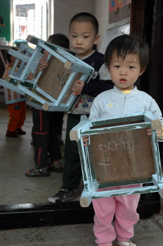 2点50分,当义工们走进古色古香的庭院时,稚气的声音传入耳:“哥哥姐姐你们好!”,一看,原来小朋友们一直坐在教室里等着,义工们来到之后,他们都变得非常兴奋。有一位志协成员刚走到教室的门口,一大堆小朋友就粘着他,不让他走。接着,小朋友为义工们献上了精彩的表演,有武术表演,扇舞表演等。武术表演是由我校广袤园武术协会特地派了会员到这里教授的,虽然动作不是很标准,小朋友的活泼表现还是让大家很开心,义工们纷纷为小朋友献上了合唱和口琴表演等。