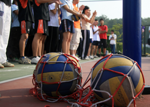 当天下午共进行了13场比赛。球场上,运动员们奋力拼搏,或高位拦网或倒地救球;球场边,观众加油声此起彼落、掌声不断,国际学院的一群美女还在比赛中间的休息时段表演了啦啦队舞,引来目光无数。