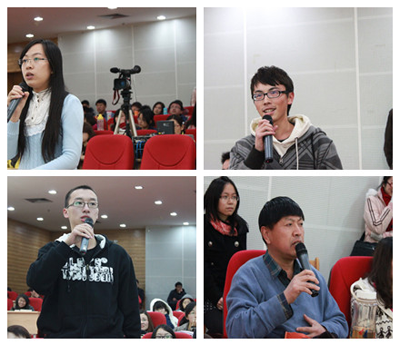讲座尾声,现场观众还未餍足,纷纷向教授提问请教,其中甚至有慕名前来的学生家长。对于我院日语系09级学生问到的“钓鱼岛事件会不会影响到日语学子的就业”,高洪表示不会造成太大的影响;退一步讲,若是事件造成了不良影响,那么日语学生不妨以此为契机,进一步研究中日关系,挖掘其中的奥妙,并为中日友好出作贡献。