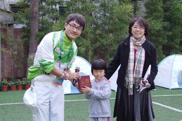梁山、彭淑瑜在升旗仪式后受邀来到大三班的小朋友中间,为他们讲授亚运相关知识。首先,两位志愿者就身着的两套志愿者服装(亚残赛会志愿者服装和城市志愿者服装)进行分类讲解,让孩子们举手找出异同。志愿者代表认真地讲解,并不时提出一些问题。小朋友们争先举手回答,有时候一些颇有创意的回答惹得全场笑声不断,场面非常生动活泼。接着,梁山、彭淑瑜就亚运、亚残运期间我校志愿者的一些相关照片,深入浅出地介绍了志愿服务的一些经历。期间,表现出色的小朋友们得到了我校志愿者送出的微笑徽章,小朋友们如获至宝。