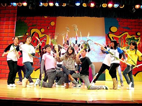 商务4班与国贸8班在《Transformer》节目中以声色并茂的音乐剧描述了他们从相识到相亲相爱的过程。柔和的背景音乐、令人感动的内容,让现场观众感受到家的温暖。