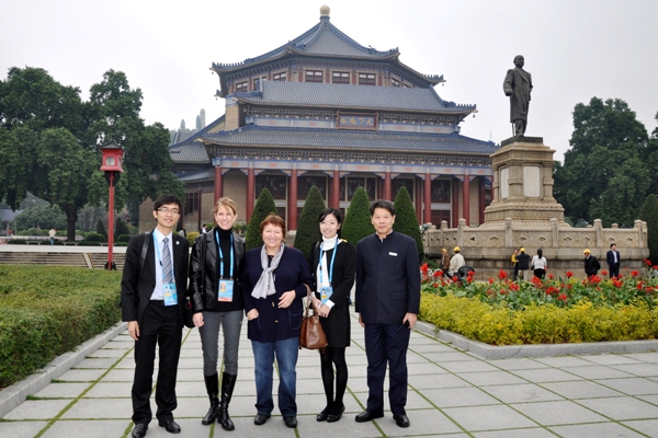 (左起:潘文迪、国际残奥会执委(GB)Jarvis的夫人lisa、克雷文主席的夫人Jocelyne、暨南大学语言学研究生陆少玲、中山纪念堂管理处书记钱晓清)