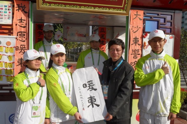 本网讯 12月16日,气温骤降,我校党委副书记许国彬一行冒着寒风,到亚运城运动员村、黄埔区城市服务站、白云机场慰问我校志愿者,并送去传情扣、“暖暖贴”等慰问品,带去暖暖心意。同行的有关工委主任冯益谦、校团委书记刘志军、政管学院院长彭未名、校团委副书记谢秀兰、英教学院党委副书记易宗勇、东语学院党委副书记郝建萍、中文学院党委副书记周秀娇等。