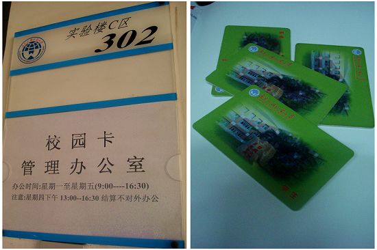 实验楼C302(校园一卡通、热水充值点),这里主要是一卡通失物的存放点,工作人员介绍,遗失卡的同学未必需要亲自到充值点挂失,网上也可以挂失。不过解挂则需要亲自带有效证件来,另外,工作人员提醒,热水卡是不记名的,同学最好不要充太多热水费。