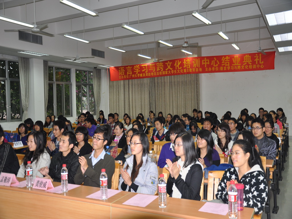 本网讯 12月11日下午,广州大学城及周边地区国家大学生文化素质教育基地——语言学习与跨文化培训中心(以下简称"培训中心")第四期学员结业典礼在广外南校区教学楼E103如期举行。广外研究生会指导老师、培训中心副主任苏高阳,研究生会主席团成员,培训中心工作人员、教员、学员等参加了此次典礼。