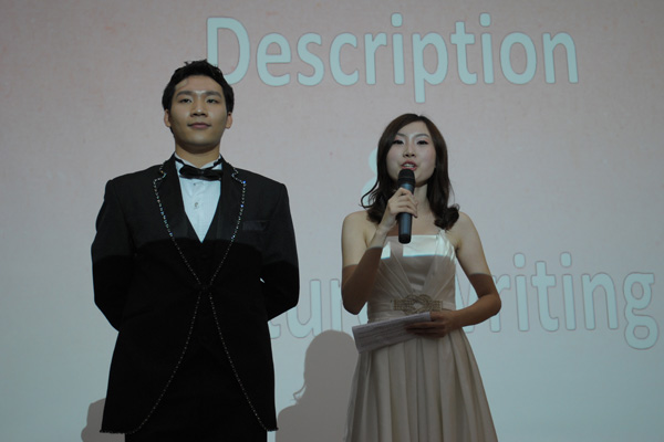 在描写文朗诵环节中,凄怆的音乐摄人心魄,全场笼罩在悲凉的气氛中,这是一班带来的《Psychopath》,在选手的动情语调下,精神病患者的命运让人唏嘘不已;高雅的饭店迎来了Daisy和Johnson的初次约会——这是09级4班团队为大家带来的《A Blind Date》。表演中,钱锐反串富裕绅士角色,拜金少女Daisy极尽媚态,引得观众阵阵发笑。