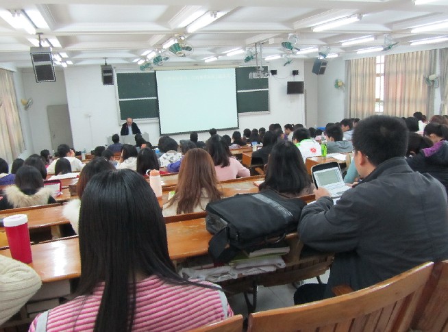 本网讯 “对于外国学习日语、研究日语的人来说,通过了解日本人爱拿什么比喻什么来加深对日语以及日本文化的了解,还是很有意义的。”12月7日下午,来自南京国际关系学院的揭侠教授在我校二教116主讲《从惯用句日汉惯用修辞运用上的异同》主题讲座时说到。我院全体08级学生、研究生以及日语系教师参加了此次讲座。