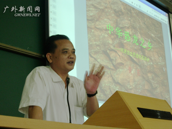 本网讯 6月9日下午,广外邓小平理论研究会主办的关于河源市恐龙化石的讲座在南校区举行。河源市文化局局长兼河源博物馆馆长黄东为同学们介绍河源丰富的恐龙化石资源及保护开发过程。