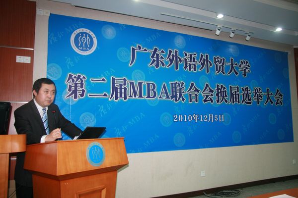 本网讯 12月5日下午,我校MBA第二届联合会换届选举大会在第六教学楼广晟讲堂盛大开锣,钟杰军高票当选第二届MBA联合会主席。出席本次换届选举大会的嘉宾有MBA教育中心执行主任孙建军、办公室主任徐艺青、招生推广部主管陈晓红、职业发展中心主管晏雯静、行政服务部主管杨金俏以及联合会第一届第二任主席王进宏。