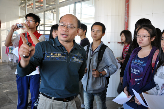 王斌讲话结束后,与何越晖、吕坚强、李一夫、刘远东一起为‘金勺奖’揭幕并合影留念。接着,各代表和参赛选手在吕坚强的带领下参观了一饭食堂并对卫生等方面进行评分。 “厨房很大,设备比我想象中好、整齐。”一名来自经贸学院的同学说。来自英教学院的臣同学就说,“厨房分类比较齐全,分成不同区间很方便”。