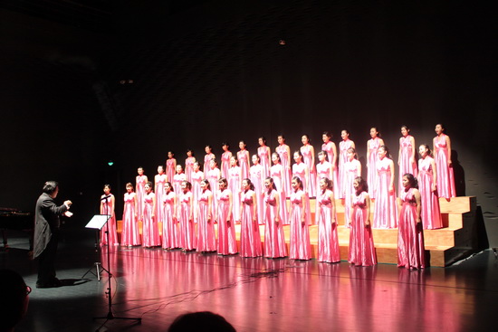 本网讯 12月1日晚,由我校艺术学院教授张彬带领的VIVACE女声合唱团应邀参加2010著名作曲家曹光平《南方采风录》作品音乐会之《南方民族音乐风情》音乐会演出。本次音乐会在广州大剧院举办,张彬担任合唱团指挥。