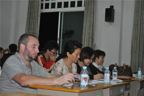 俄语赛场上评委正专注评分