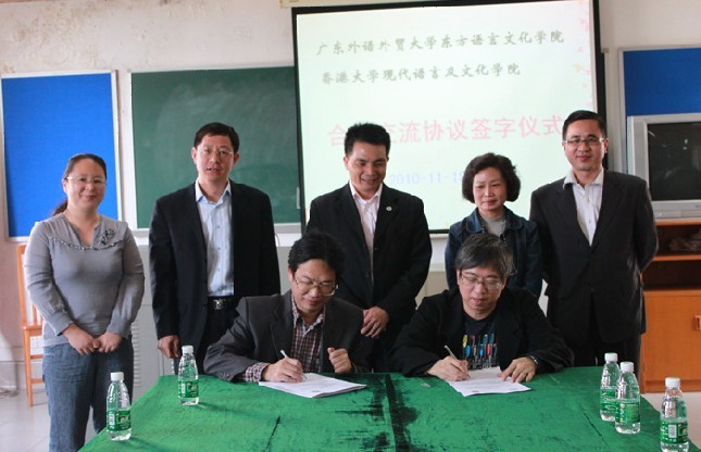 本网讯 为推动广东外语外贸大学和香港大学(以下简称港大)开展互惠互利的教育与研究交流活动,11月18日下午,东方语言文化学院与港大现代语言与文化学院在一教402会议室举行了合作交流协议签字仪式。出席仪式的有东语学院党政领导班子全体成员、各系系主任、港大现代语言与文化学院院长王向华及其随行人员。