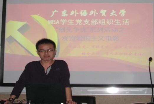 本网讯 11月23日晚,MBA学生党支部“创先争优”系列活动之爱国主义电影观赏活动在6教B103教室举行。本次活动旨在通过重温历史,激发党员同学们的爱国热忱及社会责任感。