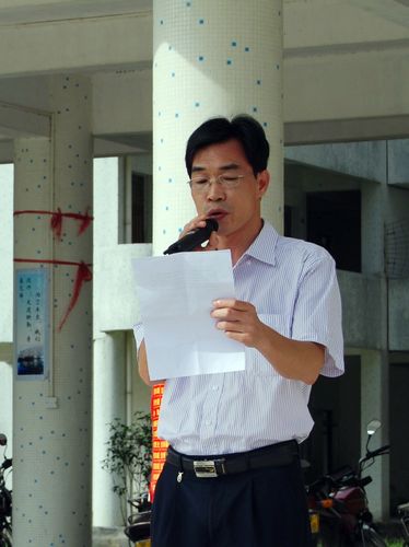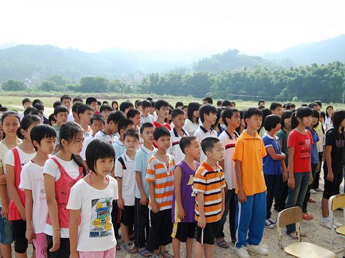 本网讯 7月20日上午7时40分,广东外语外贸大学国际商务英语学院Youngster服务队下乡活动在骄阳下正式拉开帷幕。在圭岗中学飞机造型的教学楼下,我们举行了Youngster第一次见面会。参加见面会的有圭岗中学校长黄喜,Youngster全体队员和暑期夏令营的学员们。