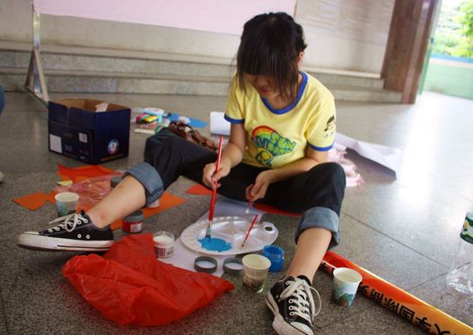 伴着冉冉升起的太阳,Sunkids的队员们拾好行李整装待发。六点五十分,提着大包小包的女队员们早早地聚集在宿舍楼下,而队伍里仅有的四位男生摇身一变,成为Sunkids 的“四壮士”。他们不辞劳苦地来往奔走,一趟接一趟地搬运着队伍的物资和队员的行李。到达中山申明亭后,“四壮士”依旧担起队伍的苦力工作。正值中午,汗水早已浸湿他们的队服,但是男生们毫无怨言。