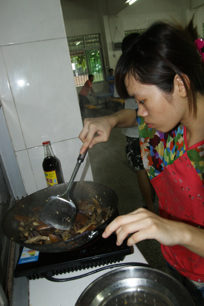 下午4时,后勤组组员前往当地菜市场进行厨具以及食物的采购,并在学校饭堂开始了“逐梦”队三下乡的第一餐的准备。