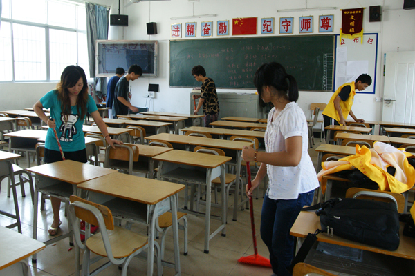 短暂的小憩之后,队员们在宿舍楼下集中并向教学楼进发,对教学楼环境进行了相关的了解之后,同学们将几间教室打扫干净,将桌椅有目的性的摆放成不同形状,力求在每一个细节上下足功夫,使得义教工作办得更好。