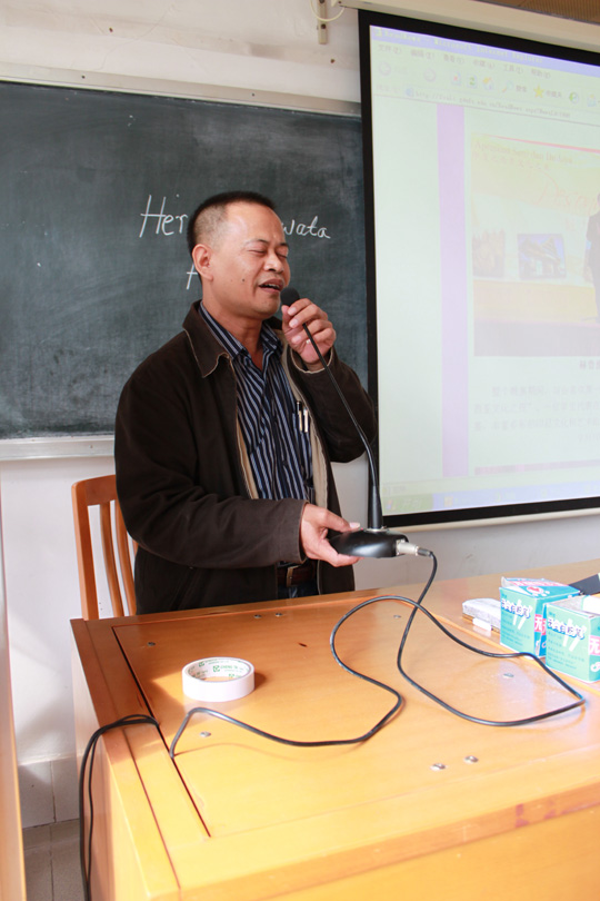 作为特邀嘉宾,外教Heru也上台发表讲话。他从解释自己名字的涵义出发,指出Heru即代表希望,为此,他祝愿印尼语系可以有一个更加美好的明天。应现场的气氛,外教 Heru 清唱了一曲《晚风》,更是将座谈会的现场气氛推向了高潮。