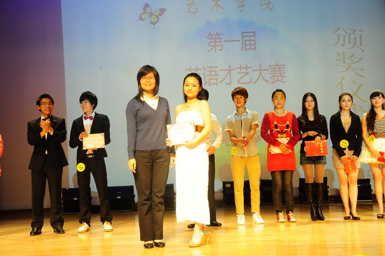 本网讯 11月2日晚,动听的音乐在南校艺术楼小剧场响起,选手们以一首热情的《High School Musical》拉开了艺术学院首届英语才艺表演大赛的帷幕。