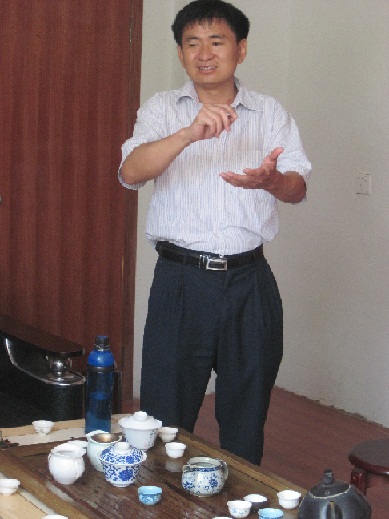 茶趣园围绕着青山绿水,沿途充满了田园气息,偶尔可见一两个“采茶女”修剪着茶树丛,全然可以用“鸡犬相闻,阡陌交通”来形容。队员首先去了茶趣园负责人李洪祥总经理的办公室请教有关英德茶业的历史。李总为人随和,他很热情地接待了我们,为我们讲解了许多有关英德红茶的文化和历史,品茶步骤,喝茶的最佳方式,制茶原理,喝茶的作用,种植好茶的条件以及挑选好茶叶的注意事项。此外,李总还跟我们谈了他大学时期的实习趣事,从他的言谈可以看出李总虽然带着很多耀眼的光环,但是他的为人却没有一点架子,个性随和而乐观。在李总身上,我们都学到了很多,不仅仅是有关茶的文化,还有许多做人的道理。