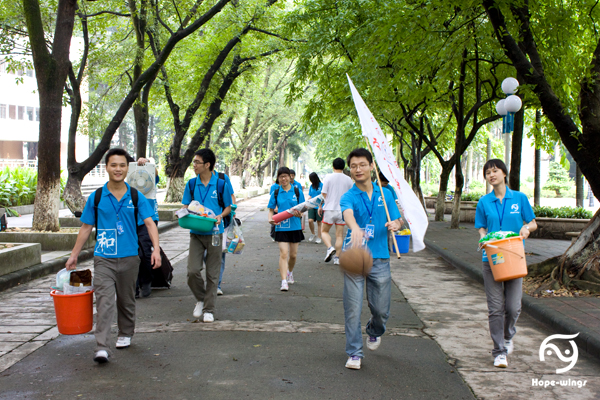 在4小时的车途中,路程总体上顺利畅通。但在进入石城村后,由于当地的电线架设较低,队伍所乘的大型校车两次被电线“拦阻”了下来。但在当地居民的热心帮助下,通过用竹竿架高电线的方式,校车最终得以顺利地前行。村民的热情给队员们留下了深刻的印象。