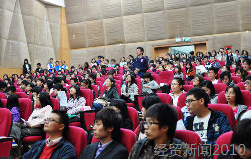 本网讯 10月28日19点,以“经学有道,致远之术”为主题的2010年经贸学院学术月暨第四届“经世者”专业技能挑战赛启动仪式在南校区图书馆报告厅隆重举行。经贸学院党委副书记康为茂,张志强、康锋莉、李晓莉、王贤斌、唐静、袁金轩、张健、叶祥杰、刘郎等老师以及四位研究生代表出席了本次大会。