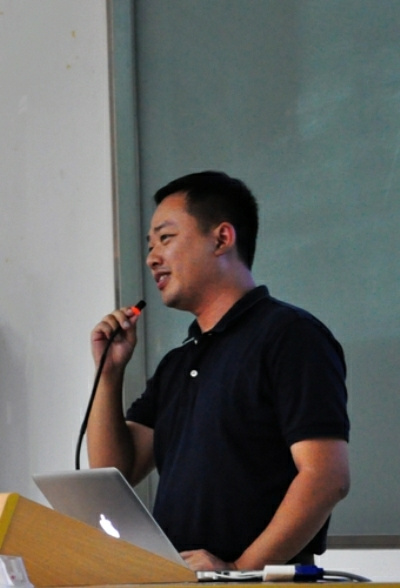 首位主讲嘉宾罗伟鸿先生采用全英的演讲,他把自己的大学生活,在谷歌公司的工作经历,以及后来创业的过程在众多学子面前,如熟人相对,娓娓而谈。拥有多年人才培训经验的罗伟鸿先生总结了创业的七大步,其中特别强调了三点,即“你想做什么”,“你应该如何去想办法解决”以及“对事情持之以恒”。现场学子纷纷举手向他请教经验,罗伟鸿先生先后用了英语,粤语,以及普通话作答,其幽默风趣的语言、令人开怀大笑的故事情节,赢得了现场阵阵掌声。最后,他鼓励在校学生要“read more,and be yourself”,学会独立思考,这样才可以“make a difference”。