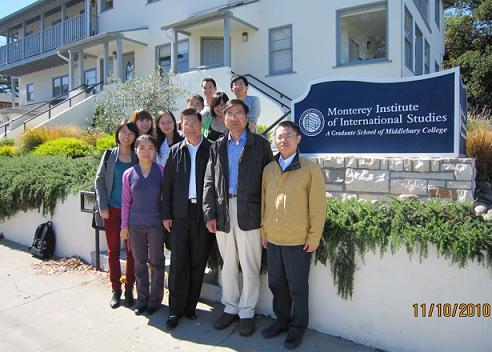 本网讯 美国当地时间10月11日,校长仲伟合在参加“广东高校领导高等教育管理第一期美国培训班”的紧张学习和参访活动之余,利用周日休息时间看望了我校在蒙特雷国际研究学院学习的留学生。高级翻译学院口译系主任王斌华博士作为该培训班的随团译员,亦随同前往看望学生。