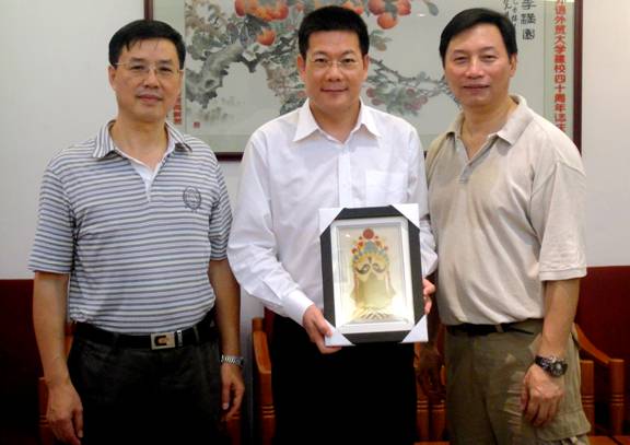 本网讯 9月25日上午,校长仲伟合、副校长方凡泉在北校第二会议室审看了艺术设计系学生创新团队礼品设计作品,对展示的20余件礼品领导们一致表示赞赏和认可,对团队成员在短短的时间内设计出的成品感到高兴满意,并当场决定将这一次的创作作品成果作为校级领导国际交流用专属礼品。同时,领导们对加强礼品设计中的广外元素和礼品定位等提出了指导性意见,仲伟合当即挑选了5件礼品作为近期出访美国赠送礼品。参加审看礼品设计的还有国际交流处处长焦方太,艺术学院院长李于昆、艺术设计系主任储晓戈。