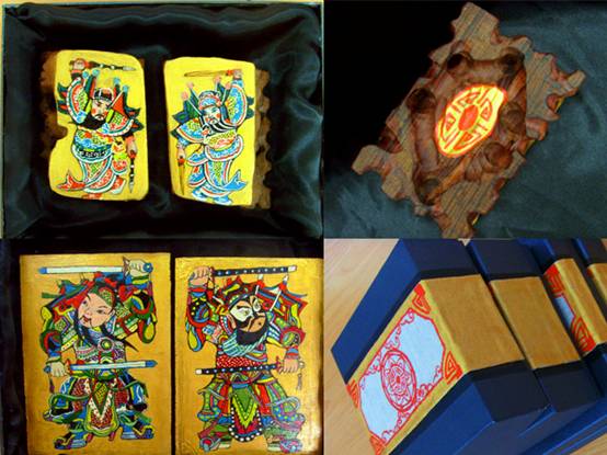 张亚君、彭馨等同学设计制作的根雕门神手绘系列礼品