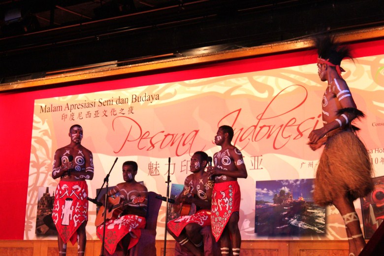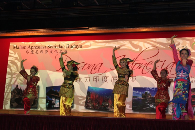 本网讯 9月26日晚,以“魅力印度尼西亚”为主题的晚宴活动在中国大酒店二楼宴会厅隆重举行。印尼驻穗总领事Edi Yusuf、印尼留学生、印尼界朋友以及来自广东、广西、福建和海南四省的印尼归侨出席了晚宴。东语学院印尼语系外教赫鲁、朱刚琴和11名学生代表应邀参加了此次印度尼西亚文化的盛宴。
