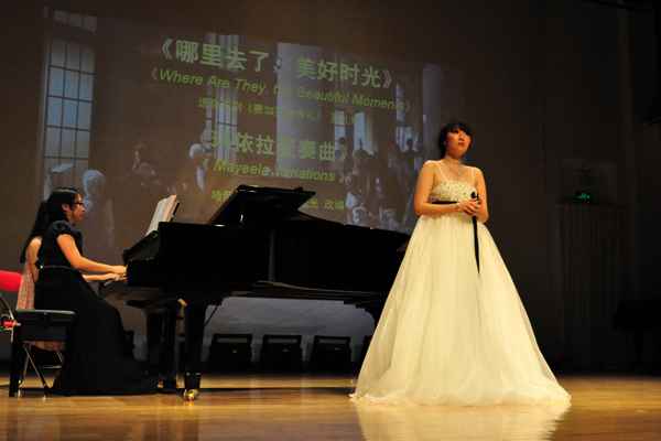 此外,06级梁家雯献上的欢快歌曲《节日欢歌》、08级张海娇带来的民歌独唱《清粼粼的水蓝莹莹的天》等歌曲都引起了现场观众的共鸣,有不少观众跟随音乐轻唱轻吟。